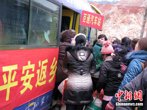 和叶家林一样高兴的还有其他在宜章务工的外地农民工。每到春节,农民工遇到最大困难就是“买车票难”、“搬运行李难”,针对这些问题,早在半个月前,宜章县总工会等部门就对农民工返乡去向进行了摸底调查,并租用5台中巴车,设置了5条从用工集中地至各车站的运送线路,接送农民工到车站。同时积极与车站协调联系,为外地农民工购买车票提供便利,确保每位农民工能走得了、走得好、走得心情舒畅。