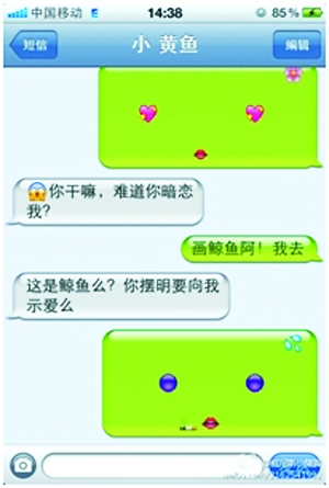 冒号加个右括号是个笑脸,冒号加个左括号是哭脸……对于不少网民而言,这种简单直观的字符表情早已不再陌生。最近,一种建立在苹果手机短信界面基础上的新网络表情走红了。这种表情以苹果手机发短信时特有的气泡对话框为脑袋,下划线为嘴巴,每条短信自成一个表情,因为表情整体看起来像一只可爱的鲸鱼,所以被形象地称为“鲸鱼体”。