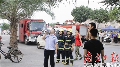 9月9日,一名男子爬上小榄镇宝丰社区泰丰市场一高约20米的灯杆,欲要跳下轻生,现场情况十分危急,幸被及时赶到的警察和消防官兵救下。