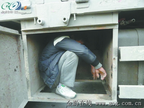 而以往一些大货车的“垫磅”方法,是通过驾驶员的助手直接来到车轮边,趁征费站工作人员不注意,在车轮接触地磅的地方,手工垫放木板或钢板等,这次不见人搞“小动作”,怎么就会有“垫磅”的钢板自动出现呢?应急队员发现了油箱旁的铁箱子,打开铁箱子,赫然发现一个中年男子猫着腰藏在里面,大家这才知道铁箱子隐藏着秘密。