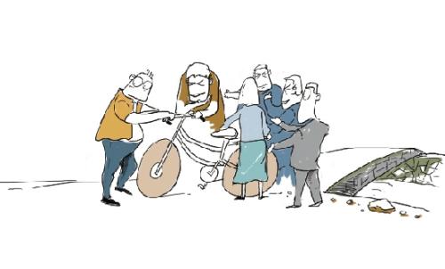 接着,5个看起来像小混混的男生迎面围了上来,他们先抓住郑女士骑的自行车,再把她从车上拉扯下来,想要非礼,郑女士拼命挣扎。