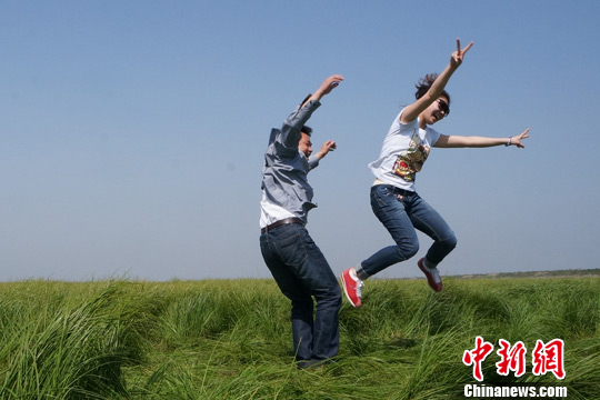 中新网4月15日电(周维)4月15日上午,“第五届全国网络媒体江西游采访团”一行走进鄱阳湖国家湿地公园。由于旺水期还未到来,鄱阳湖国家湿地公园的香油洲大片湖底露出水面,上面水草密布,在典型的江南水乡形成了一片辽阔的“塞上草原”,引得记者们在草洲上跳跃撒野,争相拍照留念。