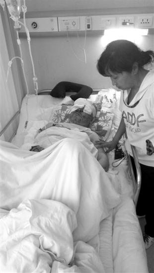 据接诊医生毛铁介绍,患者送来时,颜面部多处外伤,处于昏迷状态。经过检查,患者面部有多处骨折、脑挫裂伤、一侧眼球碎裂,右臂骨折等病症。经多科室会诊后,为患者实施了清创缝合手术。目前,患者情况稳定,已脱离危险,但一侧眼睛已经失明。(记者 胡津铭 文/摄)
