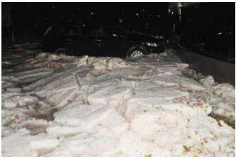 记者从云南省石林彝族自治县获悉,22日23时50分许,石林县城及周边发生严重冰雹灾害,近半小时内,降水量达40毫米左右,部分地区冰雹堆积达六七厘米,远看大地犹如铺上了一层厚厚的冰块。冰雹所到之处,不少树木损毁,大春作物基本绝收。