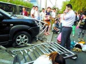 站台周围还停留着不少围观市民。附近居民卢先生告诉记者,事情大约发生在晚6时20分左右,当时还处在下班高峰时段,他正走在离站台不远的辅路上,突然,身后传来“咣”的一声巨响,吓了他一跳,等他回头看时,发现一辆SUV车多半个车身都冲到了站台上,站台边上,“倒下了一大片人”。