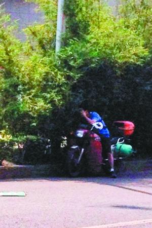 尽管没能知道该名女子的姓名,但冯先生还是想借《永川读本》向该女子道声谢谢。 图/文重庆晨报永川读本见习记者 罗洋 冯先生在隔离带的树荫下,坐在摩托车上打起瞌睡来。