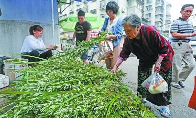 昨天,武昌得胜桥菜场一家卖艾叶的摊子被前来购买艾叶的市民“打了围”。艾叶具有回阳、理气血、逐寒湿、止血安胎等功效。自古我国民间有端午节在自家门窗插艾叶祛病、杀菌、祈福的风俗。 记者何晓刚 摄