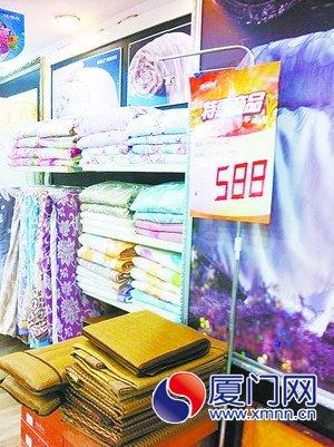 床上用品店里,正在促销竹纤维被。