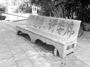 6月17日,笔者在海口人民公园看见,公园西南角的2张水泥座椅用红油漆写着“评委席”几个大字,十分醒目,有游园者称此举不文明,影响公园景观。