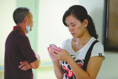 昨日下午2点,在川大华西医院上锦院区15楼唐洁的病房,因怕风吹感冒,屋里不能开空调、风扇,唐洁的妈妈和姐姐轮流给她扇扇子。