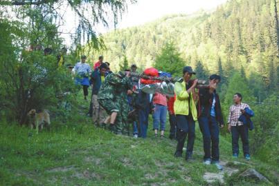 从海拔 4700 米到 3200米,救援队员们轮流背扶、担架接力……接到报告的6个半小时后,受伤山友安全到达山脚,久候在此的救护车一路呼啸,将他送往医院。