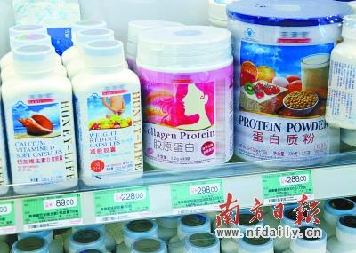近日,笔者走访了江门市区内一些护肤品专卖店和药房,发现只要跟胶原蛋白沾上关系的商品,价格普遍不菲。“胶原蛋白这种产品对皮肤是非常好的,我们很多熟客回来买,用了之后真的看着皮肤一天比一天好。”在某大型商场的一家护肤品专卖店,售货员向笔者介绍了一款“复合果汁饮品(富含胶原蛋白)”产品,每盒10支,每支10ml,售价为688元一盒,“这个产品最好能够坚持长期吃,效果更明显。”该售货员表示。在该口服液旁边也摆放着一排胶原蛋白固体饮料,价格也接近300元。