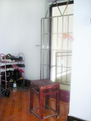 他家的防盗门外安装着锈迹斑斑的铁门和一把手指粗的铁链大锁。打开铁门和防盗门,还有一道不锈钢材质的栅栏。进门的脚下又安放了绊脚的小板凳。屋内还用不起眼的细线和铃铛扎起一道道“警报网”。