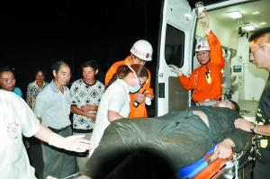 尹晓东被送上救护车。-重庆晨报记者 王梓涵 通讯员 黄剑 摄