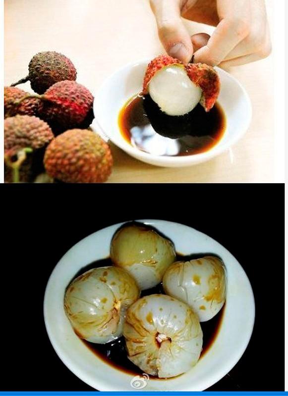 网上流传的荔枝蘸酱油图片