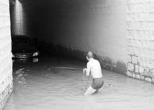 地道桥洞雨后积水深人车频被淹 积水淹到脖子(图)
