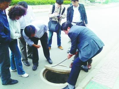 近日,市审计局会同市住建委、市纪委等相关部门对全市污水管网建设情况进行了全面检查。据悉,今年全市要建成污水主次干管总长约600公里,到户支管约1200公里。图为审计人员实地检查窨井盖施工质量是否符合设计要求。(本报记者 吕宁丰 本报通讯员 孙琳摄)