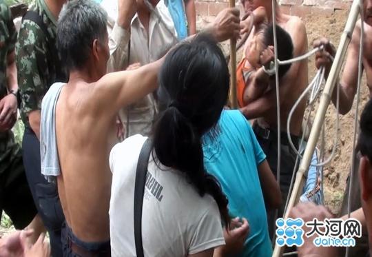 6月16日上午,漯河市临颍县瓦店乡刘庄村的一名3岁男孩(果果)在家玩耍时,不慎坠入院内没有盖的10米深井中。井水冰冷刺骨,果果的身体在井下水面上时沉时浮,生命危在旦夕。紧急时刻,当地消防官兵迅速赶到现场,用安全绳打上“活结”,在深井中凭感觉试套果果,在尝试了数十次后终于套牢果果手臂,将其救出。