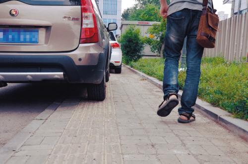 残疾人服务中心盲道停满车 保安:车位有限很无奈