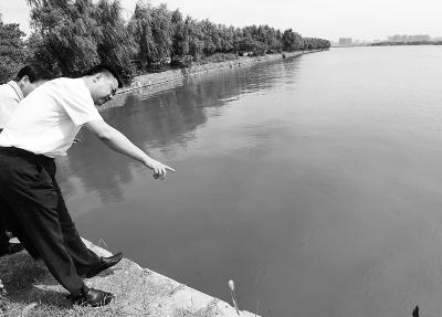副市长秦军和有关部门负责人在华农校内查看南湖排污的出水口。-记者李少文 实习生张智 摄