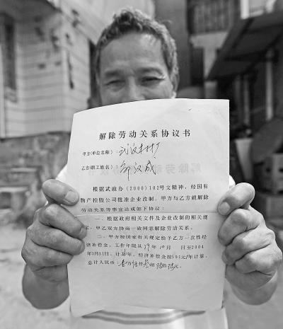 图为邹师傅2004年3月和武汉木材厂签署的劳动关系解除协议。 记者杨涛 实习生张仰强 摄