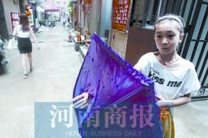 宇航的姐姐拿着被砸穿的雨伞,满脸悲伤