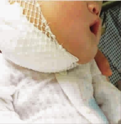 市儿童医院近日成功救治一名“大头娃娃”,耳鼻咽喉头颈外科李晓艳主任为出生44天的男宝宝小悦切除右侧颌面部及颈部巨大淋巴管瘤。小悦终于可以恬静满足地睡觉了。