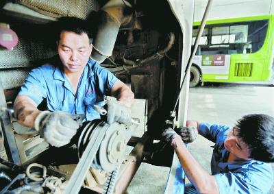工作环境60℃左右 公交车保修技工每天修车10多辆