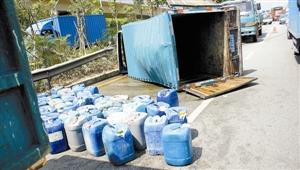 货车侧翻化学品泄漏之交通堵塞一小时