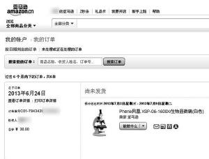 “订单显示周三到货,但我昨天等了一天也没见送来。今天上邮箱仔细一查,这才发现亚马逊早已单方面取消了我的订单!”昨日上午,刘先生回忆起自己的亚马逊“购买显微镜之旅”时仍然有些发懵。6月24日,他如往日般登录了亚马逊网站“Z秒杀”页面浏览,发现其中挂出了“凤凰XSP-06-1600X/生物显微镜(白色)原价673.1元,特价30元”的秒杀促销项目,页面显示该秒杀商品的数量为599个。他立即点击下单付款购买,并很快收到了亚马逊官方发来的订单确认邮件,其中承诺“此秒杀享受市场价0.4折优惠,免费送货预计7月3日送达”等内容。“这个价格的确折扣很大,不过考虑到各家购物网站经常会有‘几元钱买台电视’等促销手法,我也就高高兴兴地安心等收货了。谁知最后等来的竟是亚马逊的单方面取消订单邮件。”通过刘先生的演示,记者发现其亚马逊账户中的特价显微镜订单已消失无踪,而邮件也只是简单说明缺货是取消订单的原因,并指出“为了表达我们的歉意,我们向您提供人民币30元的礼品卡”。