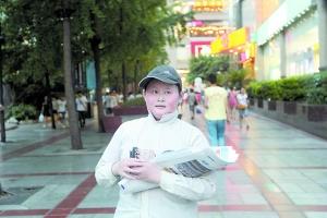 14岁的小锋患上严重的银屑病,每天卖报能赚20元,他说要存起来看病。记者 许恢毅 摄