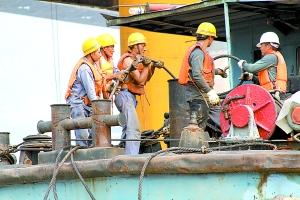 虽说是上午11点,温度达到50℃已经让人热得难受,但这并不是一天中的最高温。在这个工地上,到下午3时许,温度才真正达到了顶点。此时的平台上,气温可以超过60℃。