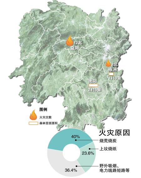 从火灾地域分布来看,除了湘西自治州外,共有13个市州发生森林火灾,其中数量较多的是益阳市和株洲市;而从过火森林面积来看,森林受损面积最大的为衡阳市和株洲市。 (7月至8月4日数据) 制图/王斌