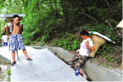 45岁的刘道满是四川省广元市朝天区两河口乡农华村人,今年是刘道满到华山做背夫的第30个年头。刚到华山时他还不到15岁。今年2月份,母亲饶学英被查出患有直肠癌,手术费需要十几万,对刘道满来说,这简直是天文数字。考虑到刘道满的家庭情况及老人年龄,医生建议保守治疗。不过,刘道满却不想放弃。考虑到大医院的花销,刘道满将母亲带回乡卫生院治疗。接着,便回到华山背夫队里继续挣钱,为母亲治病。