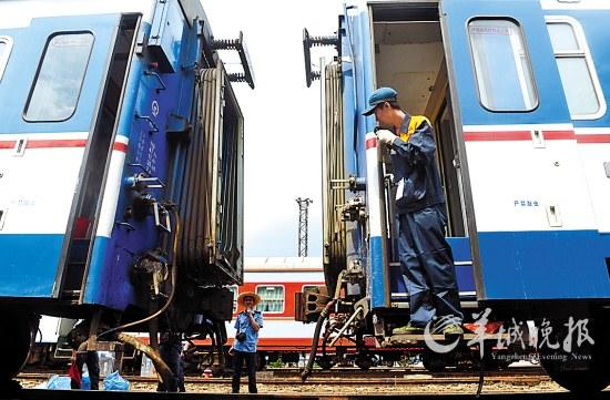 连结员正在连接2个车厢 记者 林桂炎 摄