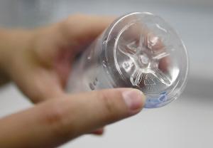 瓶底标识为“1”的是PET材质,耐热至70℃ -华商晨报华商响网记者 刘海臣 摄