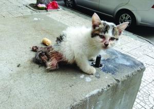 参与互动(0)生活报8月15日讯 “这么可爱的小猫受伤了,谁能帮帮它?”哈市一只小猫双腿溃烂露宿街头,虽然曾有人短暂救助过它,但很快又遭到了遗弃。就在这只可怜的小猫生命垂危之际,今天一位市民发出的微博引来了冰城众多好心人的关注,并及时救助了这只小猫。