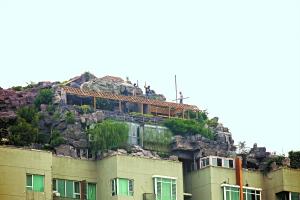 其中一位工人告诉记者,从外表看,楼顶违建的拆除难度较大。假山面积铺设太广,加之上面还有房子,拆起来是个很大的工程,光是清理废物就是个大工程。更何况听居民说,违建里还有泳池和电梯,很多东西在拆除时必须切割成小块。