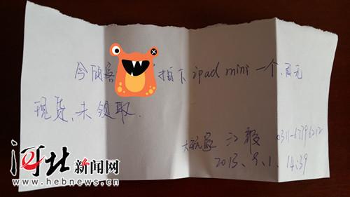石家庄万达大玩家超乐场为李女士提供的ipad mini领取欠条。
