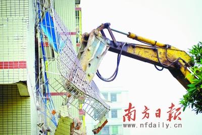 “啪!”随着器械的运作,眼前的高楼大厦一点点化为废墟。昨天上午,清城区组织有关单位,出动200余名执法人员,对位于东城街道办事处海逸路旁占地面积1700多平方米的违规建筑进行拆除,拆除建筑面积共10300平方米。记者在现场看到,此次拆除的违建共6栋,每栋楼高8层,其中4栋已砌好外墙,装上窗罩,拉有电网和水管,基本具备入住条件。据悉,这是东城今年以来拆除面积最大的一宗违规建筑,价值超过1000万,拆除时间为三四天。目前该违规建筑已售出房子83套,大部分购买者为英德或阳山人。