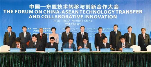 会上,中国与东盟各国有关科技企业、高校和科研机构就中国-东盟技术转移中心协作网络建设、中国-东盟遥感卫星数据共享与服务平台建设、中老可再生能源开发与利用联合实验室建设、基于北斗位置服务的示范应用等20个合作项目进行签约。
