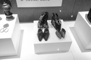 “这么小的鞋啊,就烟盒般大小。”记者在汉族展区内,见到了广为熟知的“三寸金莲”。“裹脚也叫缠足,俗称缠小脚、裹小脚,是我国20世纪以前在汉族中普遍流行的一种风俗。”李平说,“三寸金莲”一度成为中国古代女子审美的一个重要条件,但小脚被称为“金莲”的原因,始终是一个谜。