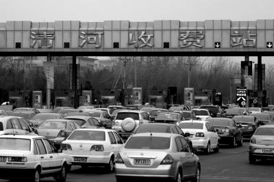 2013年4月4日,八达岭高速清河收费站前车辆排起长龙。(资料图片)