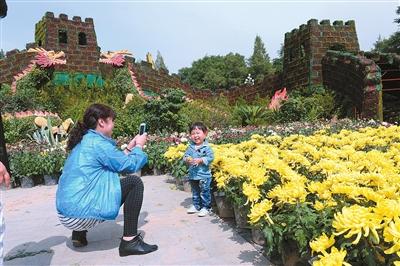 由银川市园林局举办的第三届观菊赏石文化节暨第四届花艺大赛将于9月13日开幕,届时在中山公园和海宝公园两个活动主会场摆放总计200多个品种的近30万盆菊花。昨天中山公园门口摆放的园林小品长城已初具形态,吸引市民拍照留念。(记者 屈晓飞)