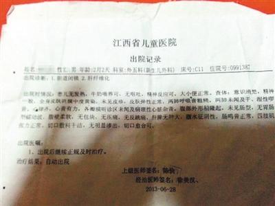 陈先生的妻子王女士回忆,今年4月15日儿子出生时,面色发黄,大便是白色的,肚子跟吃撑了一样胀起来。于是,在儿子两月时,他们带着儿子去了江西省儿童医院。在进行了一系列检查后,医院最后确诊我儿子患有胆道闭锁。