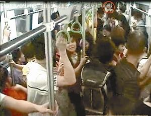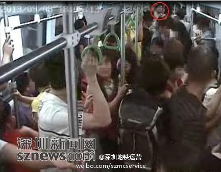 深圳地铁提供的视频截图上可以看到,前日地铁内打架的画面(红圈处)。