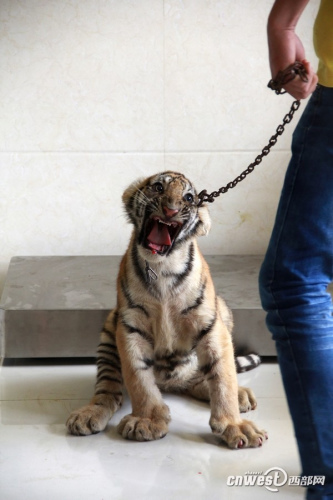 四个月大幼虎体检像孩童 狂吼挣扎“哭鼻子”(图)(2)