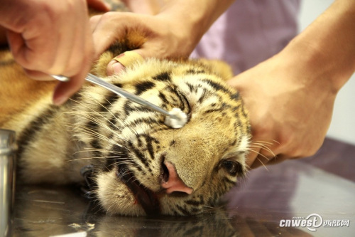 四个月大幼虎体检像孩童 狂吼挣扎“哭鼻子”(图)(4)