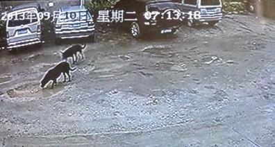 “丽江解方”回到自己开的商铺内查看监控,果然见到两只犯罪嫌疑狗。“视频显示:10日上午6时40分许,有两条大型黑色犬只一直在车前徘徊,看不清它们具体做了些什么,不过能感觉它们像人一样在干活。”“丽江解方”说,两条大狗先是在轿车前面晃悠,后来又跑到车后路面上一水坑里喝水,“它们总共在车子附近待了将近一个小时,两条狗都在水塘里喝过水,其中一条还喝了两次水。”