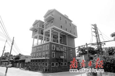 另外,根据石碣镇规划部门提供资料显示,该建筑物属于私人住宅,报建申请人是何志根。该地块具有《建设用地规划许可证》及《建设工程规划许可证》,许可证上的资料显示,该建筑报建设计为4层共430平方米私人住宅,设计单位为东莞市鸿科建筑设计室。